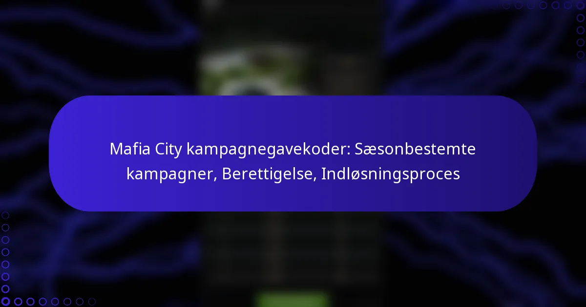 Mafia City kampagnegavekoder: Sæsonbestemte kampagner, Berettigelse, Indløsningsproces